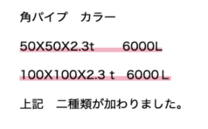 鉄のカラー(赤錆び止め)角パイプが新しく一部在庫に加わりました!