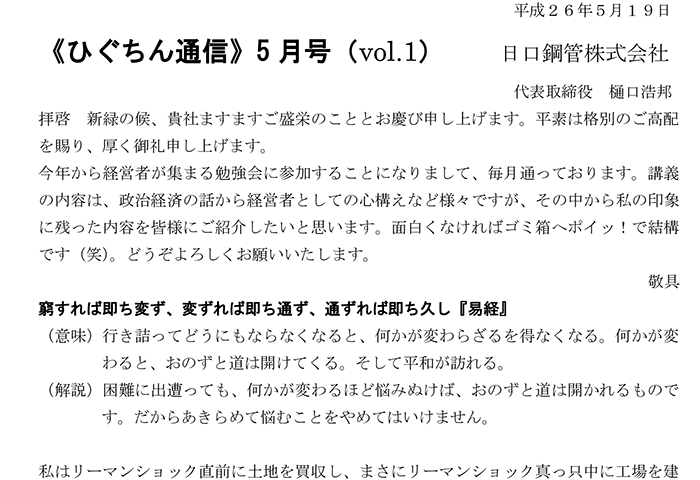 ひぐちん通信 ひぐちん通信 vol.1 を公開しました。 2014.05.19 ひぐちん通信 📄 PDFでご覧いただけます。 ひぐちん通信 vol.2 を公開しました。 次の記事 ひぐちん通信 vol.76 を公開しました。 2020.07.15
